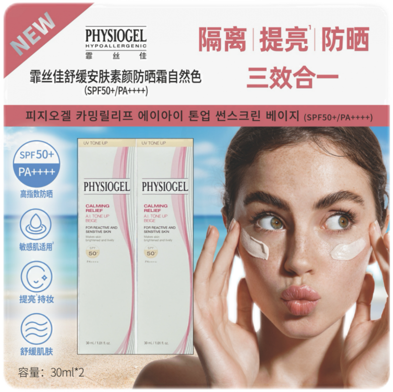 [2025 年 3月 27 日,上海] 快节奏繁忙生活之中,“自然妆感”、“精简主义”盛行,消费者更加追求既能充分保护肌肤,同时不失自然美感的多效护肤方式。这一趋势下,国际干敏专研品牌霏丝佳PHYSIOGEL推出全新舒缓安肤素颜防晒霜自然色(简称:霏丝佳素颜防晒霜),带来轻松、便捷的护肤方案,隔离、提亮、防晒三效合一,拓展传统防晒边界,一抹绽放肌肤光采。这款干敏肌友好的SPF50+/PA++++高倍防晒霜,遮挡紫外线的同时,以霏丝佳核心拟肤成分温和舒缓修护。轻薄服帖质地可替代隔离霜与粉底液,自然提亮,打造快速出门"伪素颜"。同时,新品将在山姆全国门店同步上市,为门店会员提供春夏防晒的崭新选择。