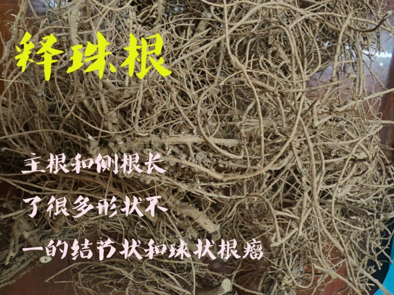 释珠根有抗菌消炎,活血散结,行水消肿、抗癌肿瘤。用于淋巴结核,乳痈乳癌,肝肾囊肿,胰腺炎,甲状腺、肝硬化,肺部结节,水肿盛满,一切癌症、肿痛。
