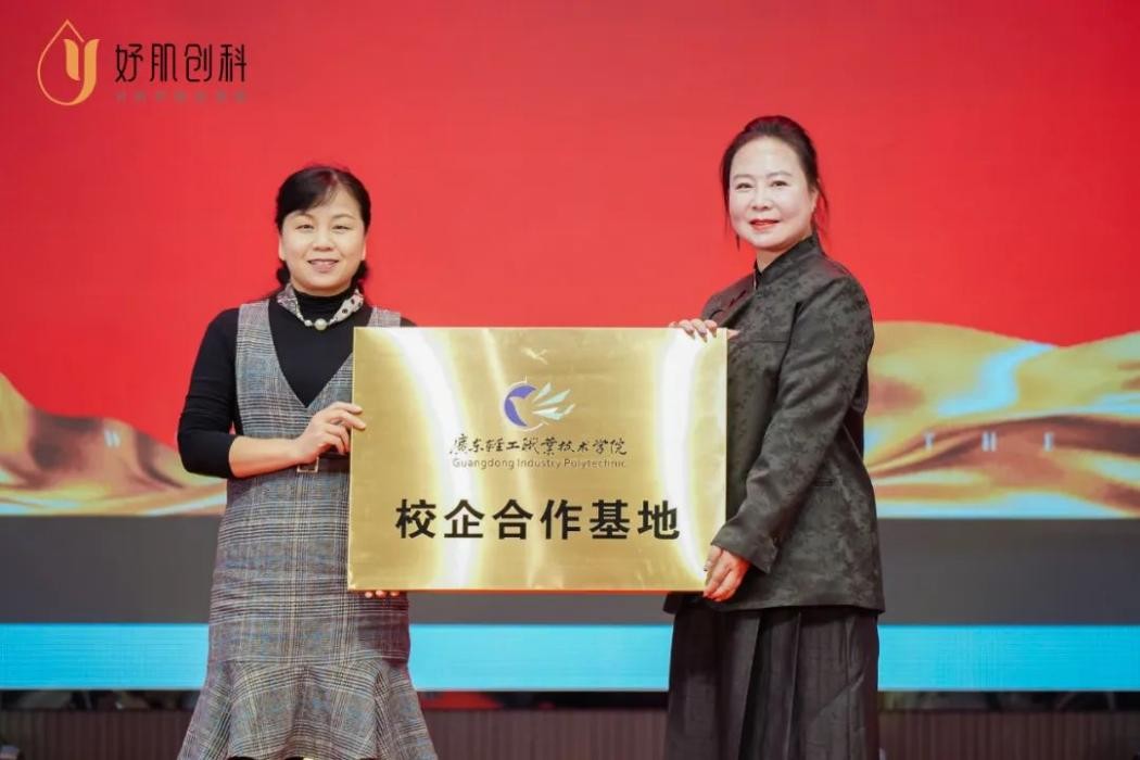 此外,在峰会的尾声,受邀参与本次活动广州轻工学院的领导,还特别授予了好肌创科企业“广州轻工职业技术学院校外实践基地”和“校企合作基地”两项荣誉称号。这两项授牌不仅是对好肌创科行业实力的重大肯定,更是企业责任意识的展现和社会担当的承诺。