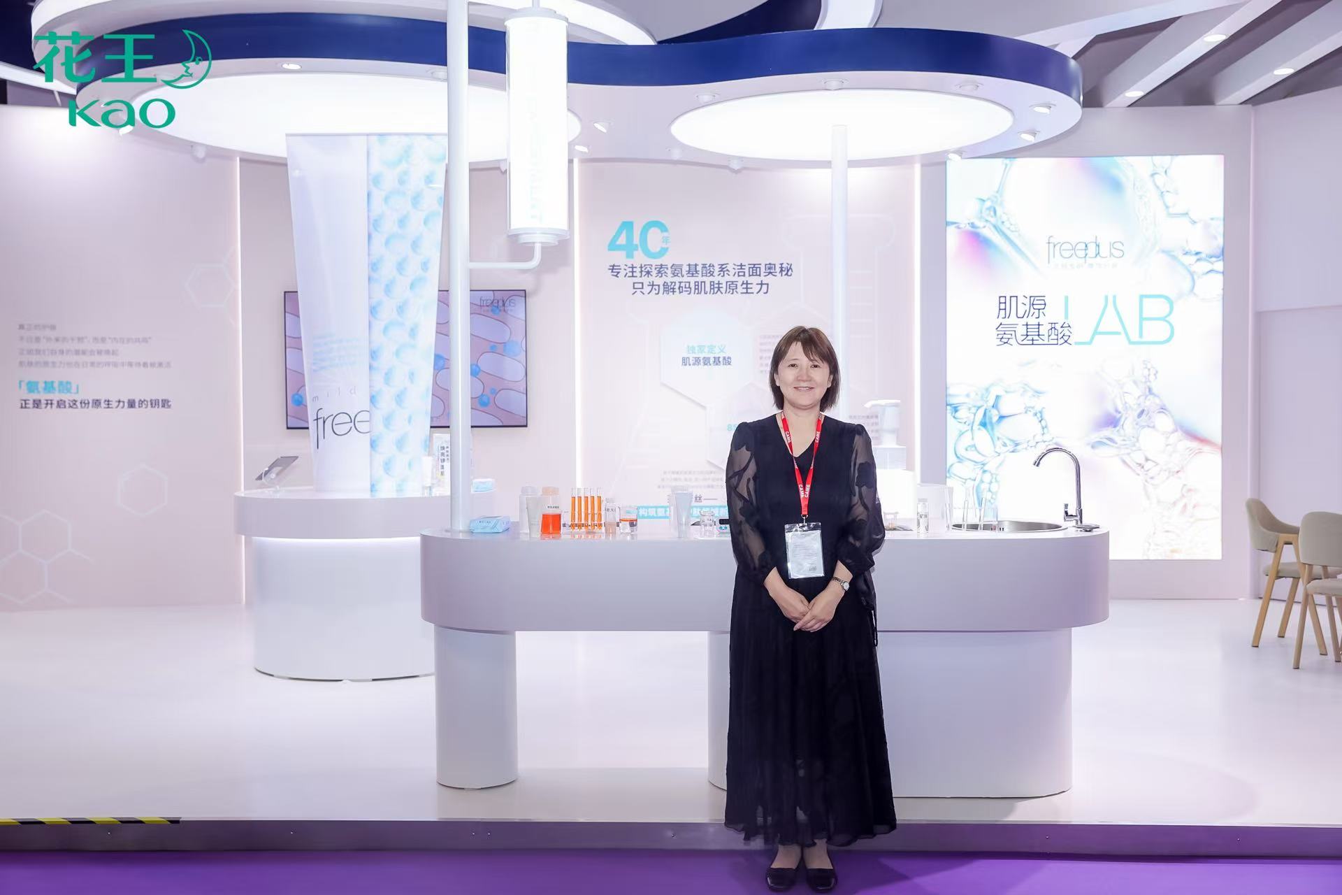 展会内容覆盖政策解读、技术创新、市场洞察与国际交流,全面呈现行业前沿动向。连续第二年亮相的花王(中国),不仅在学术层面深度分享了氨基酸技术在清洁体系中的创新研究,更延续品牌参展策略——继去年推出Curel珂润主题展区后,今年携freeplus芙丽芳丝以“肌源氨基酸LAB”为主题打造沉浸式互动展台,让观众零距离读懂品牌“40年专注氨基酸系洁面奥秘,解码肌肤原生力”的科研底气。