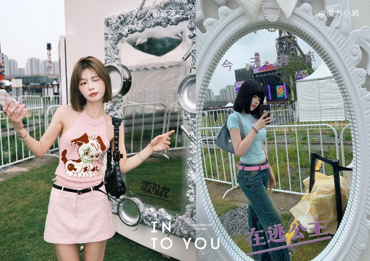 为此,场地内还设有音乐节唯一一块Live画报供打卡!活动当天吸引到超多不同风格的草莓星人来上墙,堪称音乐节现场最具Live美的一块大屏~不定时出现的小雨也毫不影响热烈的互动氛围,INTO YOU的展位门口始终排着长队,打卡者络绎不绝!