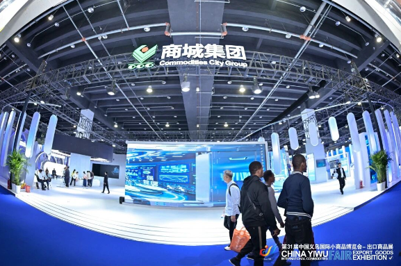 其中商城集团展区,以“数贸义乌 开创未来”为主题,全方位展示“1+3+N”的数贸支撑体系——布