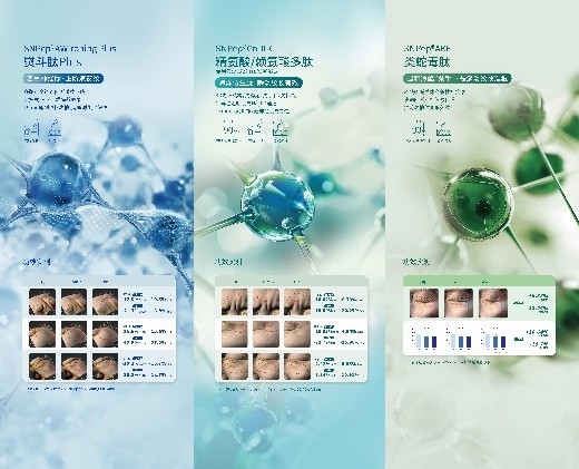 现已拥有80+款美容肽产品,涵盖抗皱紧致、舒缓修护、美白淡斑、眼周护理、生发防脱等五大核心功效板块,满足不同的肤质和护肤需求。